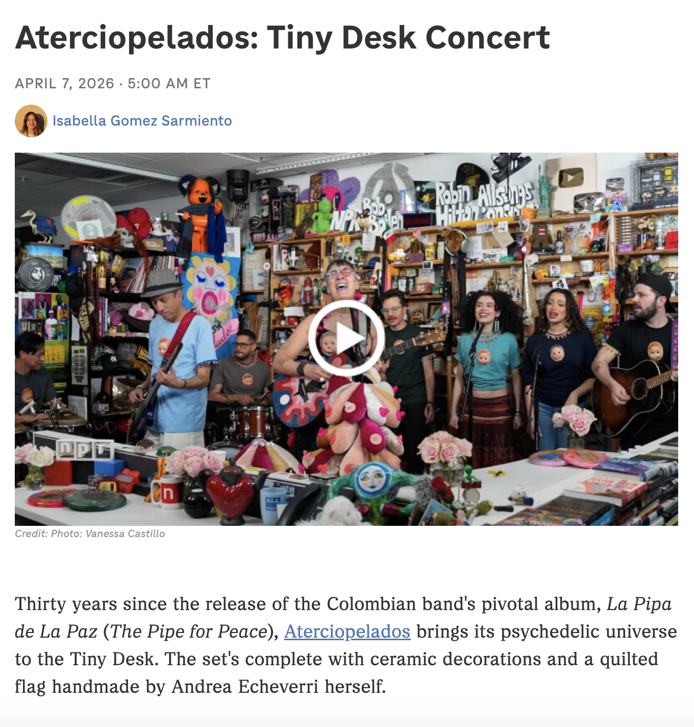 Alanna recently appeared on NPR Tiny Desk with the Colombian rock band Aterciopelados. She was featured as a background vocalist. Click below to watch the episode and read the article.